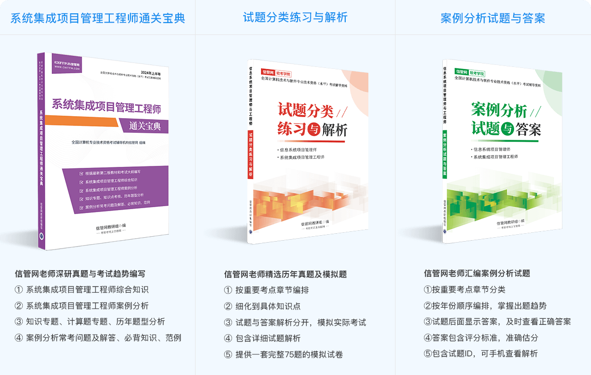 信管網(wǎng)軟考課程由信管網(wǎng)依托10年專業(yè)軟考教研傾力打造,教材和資料參編作者和資深講師坐鎮(zhèn),通過深研歷年考試出題規(guī)律與考試大綱,深挖核心知識與高頻考點(diǎn),為學(xué)員考試保駕護(hù)航。面授、直播&錄播,多種班型靈活學(xué)習(xí),滿足不同學(xué)員考證需求,降低課程學(xué)習(xí)難度,使學(xué)習(xí)效果事半功倍。