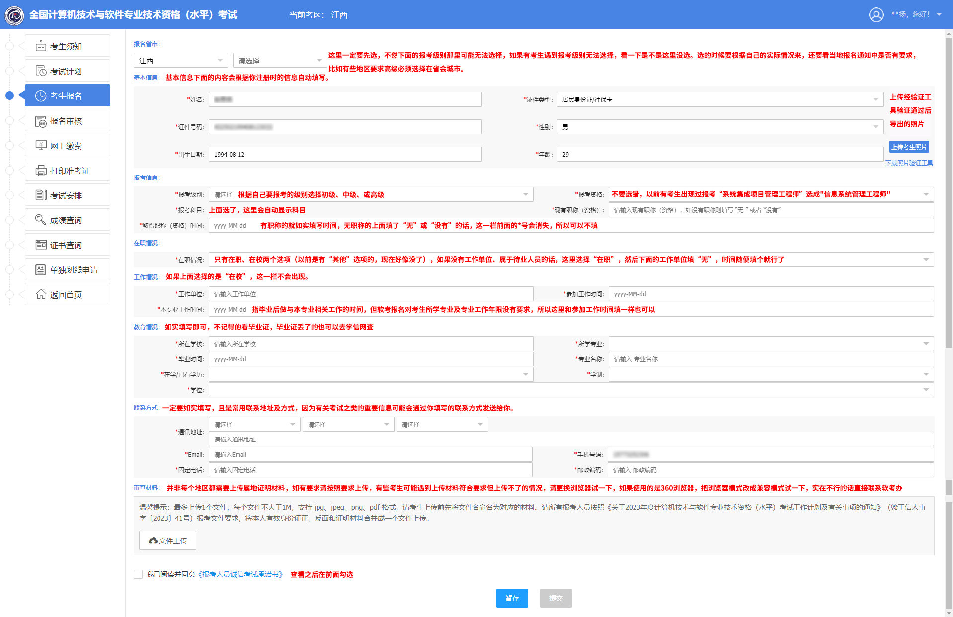 ⑧填寫(xiě)報(bào)名信息、上傳報(bào)名照片、上傳證明材料(并非所有地區(qū)都需要上傳證明材料)【點(diǎn)擊查看報(bào)名信息填寫(xiě)圖文說(shuō)明】